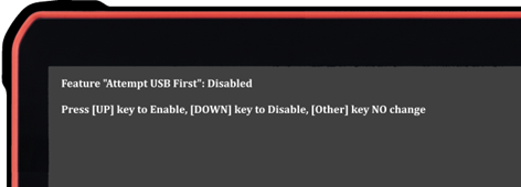 ![]() | Nutzen Sie die Lautstärke + Taste um den Punkt 4 Boot USB First auszuwählen und bestätigen Sie die Auswahl mit der Ein/Aus Taste |